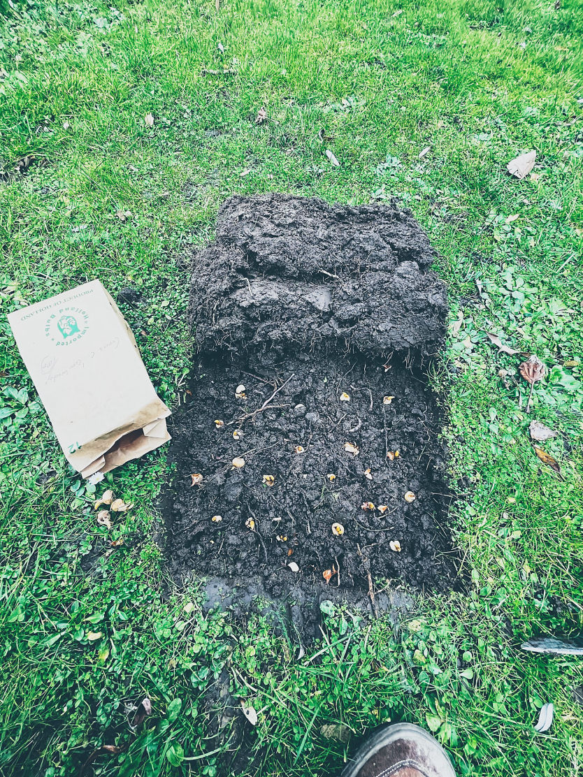 Drücke die Erde über den Zwiebeln leicht an, damit sie fest sitzt und keinen Hohlraum bildet.