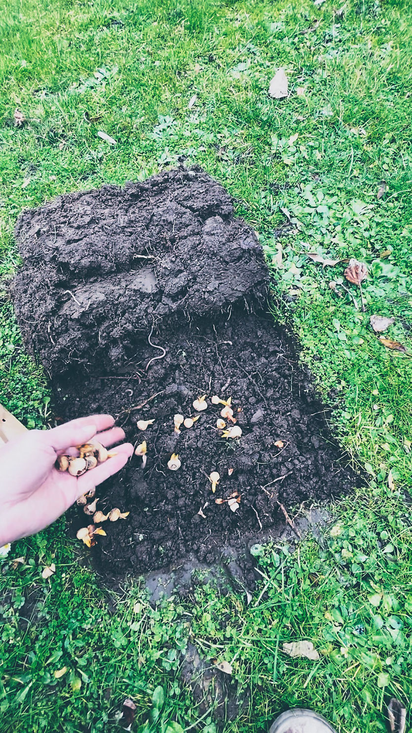 Nach dem Pflanzen solltest du den Boden gut wässern, damit die Zwiebeln anfangen können, Wurzeln zu bilden.